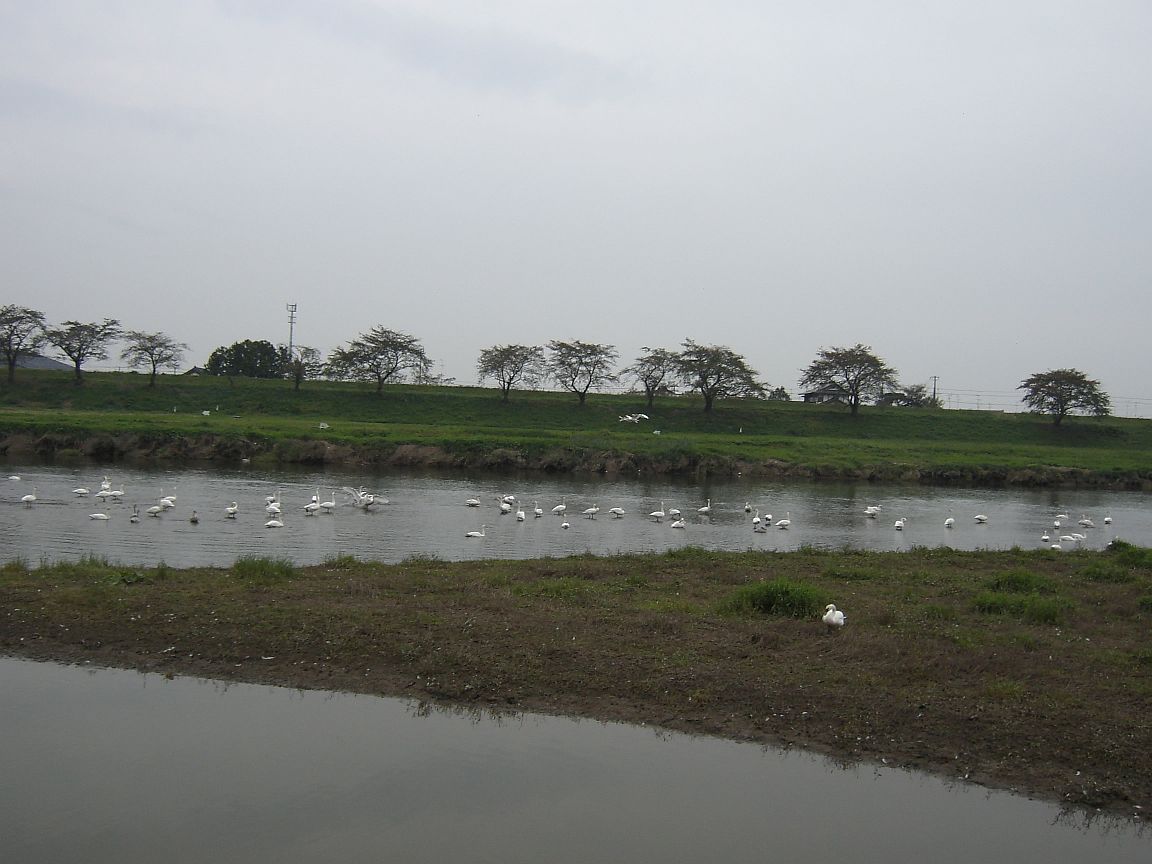 2004年11月23日 「東北旅行記」 その12ヶ月ぶりの『介護日記』です。この間に残暑が過ぎ、珍しく台風が北海道にも上陸し、北大のポプラ並木や、植物園の原生林の木をなぎ倒しました。この近所の街路樹もあちこちで倒れ、まだ原生林の面影を残す円山公園も、根元からひっくり返った木や、まっぷたつに割れた痛々しい木が道をふさぎ、何日間も通行止めでした。 2ヶ月も書かなかったのは、和子を連れての東北旅行という、旅慣れた私にも大きな仕事があり、その準備と帰ってからの疲労が重なったからです。その間に北海道の秋はあっという間に過ぎ、初雪が降りました。淡雪程度ですぐ消えましたが、峠は圧雪やアイスバーンで、冬季閉鎖に入った峠道もあります。山間部のスキー場も営業を始めました。 11月9日のメルマガ号外で、その東北旅行を同行取材したHBC(北海道放送)のニュース特集が19日に放送されるとお知らせしましたが、局の側の都合で月末30日に延期になったことも、その前日のメルマガでお知らせしました。しかしこの号外は最初の号外は同じものを4本、2回目のは2本送ってしまいました。いつもは送信ボタンを押せばそのまま送信されるのですが、今回は送信ボックスに入ってしまい、いろいろやって いる間のエラーでした。その少し前にパソコンのマシンを入れ替えたので、私がまだ新しいソフトに慣れていないせいなのかも知れません。いずれにしても、お騒がせしたことをお詫びします。受信状態をチェックするために自分の携帯にも送っているので、同じメールが4本も続けて入り、自分でも仰天しました。 旅行は往復船中泊も含めて4泊5日、帰ったのが22日で、翌日夕方が地震のニュースでした。次々と明らかになる被害の大きさに息をのみました。今日23日が新潟中越地震からまる1ヶ月です。夕方のニュースが、現地の各地で行われた合同慰霊祭の様子を報じています。ボランテイアにも行けないので、応分の寄付を日赤の口座に送りました。 前置きが長くなりましたが、「東北旅行記」の本文です。 3年前に和子のお母さんが亡くなりました。飛行機には乗れないので本州に住む息子たちに行ってもらいましたが、あまり遅くならないうちにお墓参りに連れて行きたいと、夏の斜里旅行の時からHBCの記者に話していました。そしてお墓参りのあと、和子の大学の恩師のご都合が良ければ、お伺いしたいと考えていました。 そんなわけで、苫小牧から秋田に行くフェリーの4人用個室を確保しました。ここのクリニックのDrに頼んで、導尿カテーテルと胃瘻のカテーテル、バルーンを膨らませるのに使う蒸留水まで用意してもらいました。病院はどこにでもあるけれど、カテーテルは太さが何種類かあるので、病院に行けばどんな太さのものでも常備しているわけではないのです。出発の前夜、Drが部屋に現れ、発熱の時の熱冷ましをくれました。そして、それでも熱が下がらない時は、いつでも電話するように言われました。このマンションの介護フロアでは、いつでも緊急ボタンを押せば対応してくれるのですが、4泊5日の旅行中も、そのサービスが東北にまで延長された感じでした。いつものように手伝ってくださる、学童保育の時代の親仲間だったHさんとSさん。Sさんは初めてだけど、この近くの重度障害児の施設に長く勤めていた元ナースで、心強いサポーターでした。それにHBCの取材クルーが3人、車2台7人の旅行でした。 第1日は苫小牧を夜8時前に出航して秋田港に朝8時頃に着きました。秋田自動車道に入り、西から東に東北の脊梁山地を一気に抜け、北上ジャンクションから東北自動車道に入って一路南下、4時間足らずで実家の近くのインターチェンジに着きました。途中昼食のために立ち寄った岩手県の前沢サービスエリアの車椅子トイレには、大人用のベッドがありました。幅が狭い診察台程度のものを持ってきて置いた、という感じでしたが、ずいぶん助かりました。新聞の投書欄で、「おとな用のベッドが無いと、親を連れて旅に出られない」というのを読んだことがあります。 実家のある町は宮城県の北の端で、周囲を水田に囲まれた、人口1万5千人ほどの静かな町です。和子はこの町で4歳から高校卒業までを過ごしたのです。病気が進んで目もよく見えないらしく、脳の言語回路は壊れてしまって、いうところの記憶はもちろん無いので、お墓参りといってもわからないかも知れないけれど、感性の記憶はまだ残っているだろうと私は思っています。花を供えてしばらくの時間お墓のそばで過ごしました。91歳で亡くなるまで和子のことを案じていたというお母さんも、安心してくれたかも知れません。 「迫川と白鳥」 (画像をクリックすると大きく表示します)
